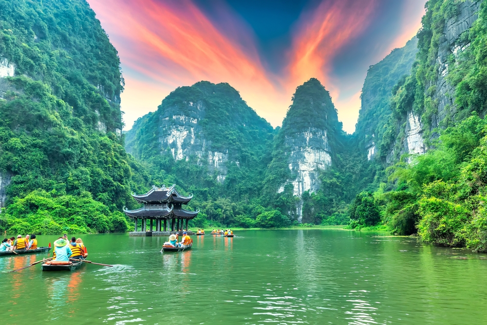 Escursione in bicicletta (8/10 chilometri in bicicletta, circa 1 ora), per ammirare un paesaggio spettacolare caratterizzato da picchi rocciosi, canali serpeggianti, vegetazione lussureggiante, ma anche risaie sapientemente lavorate dai contadini e caratteristici villaggi tipici del delta del fiume rosso. A seguire, navigazione a bordo di tipici sampan in legno, sospinti a remi, in un’atmosfera rilassante e silenziosa, fino a raggiungere le sue grotte. Sbarco e proseguimento per il proprio hotel. Pernottamento.